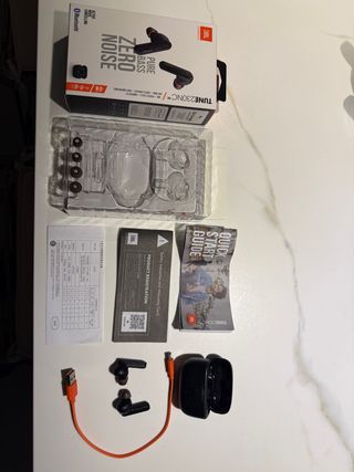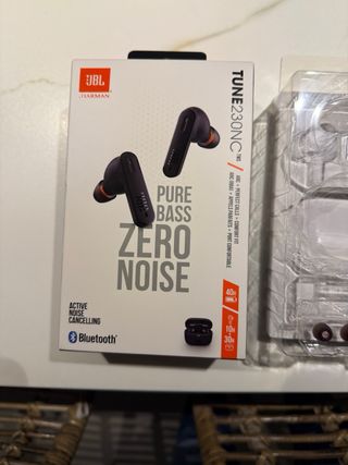 Auriculares inalámbricos JBL TUNE230NC con cancelación de ruido activa. Practicamente sin estrenar. Se han usado dos veces. - Diseño ergonómico para un ajuste cómodo. - Sonido Pure Bass. - Conectividad Bluetooth. - Incluye estuche de carga, cable USB y almohadillas de diferentes tamaños.