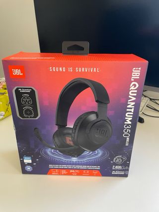 Solo han sido usado dos veces. Aun siguen en garantía. Como nuevos. Auriculares inalámbricos JBL Quantum 350. - Controladores de 40 mm con JBL QuantumSOUND. - Conexión inalámbrica 2.4 GHz sin pérdidas y sin retardo. - Construcción ligera y duradera. - Micrófono extraíble con enfoque de voz y función de silencio. - Compatibilidad multiplataforma.