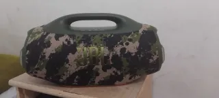 Altavoz portátil JBL Boombox 4 con un diseño de camuflaje. Comprado en diciembre nuevo con la caja, lo hemos comprado por 500€...es una pasada en sonido...una bestia! Somos de Alcalá, no hacemos envío