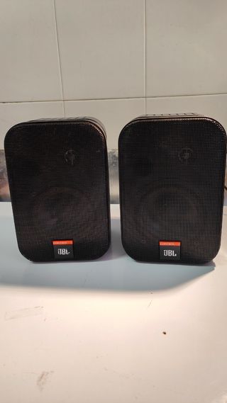 2 altavoces En buen estado estético y perfecto funcionamiento. La famosa caja Control 1 de la firma JBL es una versión con muchas mejoras y matices que sus predecesoras. Caja de 2 vías compacta blindada magnéticamente formada por un woofer de 5¼" y un tweeter de policarbonato de ¾". Disponible en un color negro elegante.Dos vías Potencia: 150W/4 Ohm Recinto de material plástico Rejilla metálica Conectores de pinzado de cable Medidas: 235 x 159 x 143 mm Peso: 1,8 kg No incluye soportes pared.