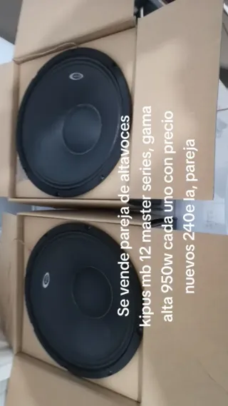 Se vende pareja de altavoces Kipus MB 12 Master series, gama alta. - Potencia de 950W cada uno. - Nuevos. - Precio por la pareja 100e. Se vende x 100e la, pareja la, etapa jbl 80e y el subwoofer 80 total, 240e todo