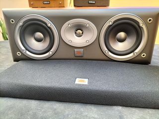 Conjunto de altavoces para cine en casa, combinando las marcas JBL y Yamaha 1 Central Altavoz JBL Serie Northridge EC25, dimensiones (alt. x anch. x prof.) 175 x 457 x 254 mm - 2 frontales JBL Northridge E20, dimensiones (alt. x an. x prof.) 275mm x 153mm x 206mm y 2 Traseros YAMAHA NS-10MM woofer de cono de 9 cm. Entrada nominal de 40 W. 6 ohmios, dimensiones (alt. x an. x prof.) 195mm x 105mm x 140mm.Todos en perfecto estado y sin n - Dos altavoces frontales de madera con detalles plateados. - Un altavoz central con tres drivers. - Dos altavoces traseros compactos. - Dos bases de altavoz negras con logo JBL.