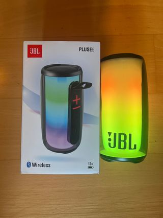 Altavoz JBL Pulse 6, completamente nuevo y sin abrir. Tiene diferentes modos para controlar la luz y los colores y puede funcionar sin la luz ahorrando batería Hasta 12 h de reproducción de musica - Diseño moderno y portátil. - Iluminación LED integrada. - Conexión inalámbrica. Tiene menos de 2 h de uso