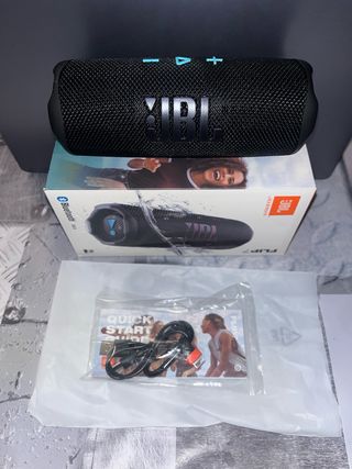 Altavoz portátil JBL en color azul. Incluye su cable de carga para que puedas disfrutar de tu música en cualquier lugar. - Diseño compacto y moderno. - Sonido de alta calidad característico de JBL.