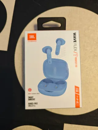 Auriculares inalámbricos JBL Wave Flex con diseño Perfect Fit. Regalo repetido. - Color azul. - Red Dot Winner 2023. - Smart Ambient. - Llamadas manos libres. - 32 horas de autonomía total.
