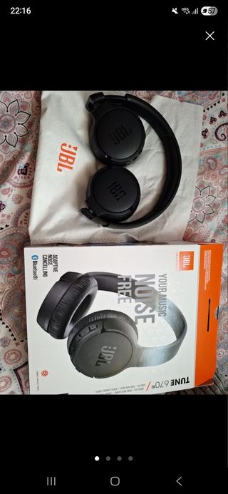 Auriculares inalámbricos JBL Tune 670NC, de color negro. Están prácticamente nuevos. - Cancelación de ruido adaptativa. - Conexión Bluetooth. - Diseño cómodo y ligero.