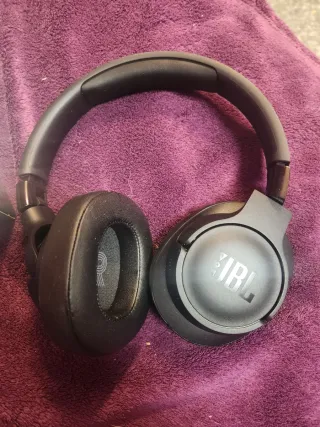 Auriculares inalámbricos de la marca JBL en color negro. - Diseño over-ear. - Almohadillas cómodas. - Logo de JBL en los laterales.