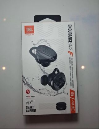 Auriculares inalámbricos JBL Endurance Race en color negro. Diseñados para ofrecer un sonido potente y una gran durabilidad. - Resistentes al agua y al polvo (IP67). - Tecnología Smart Ambient. - Hasta 30 horas de autonomía con el estuche de carga.