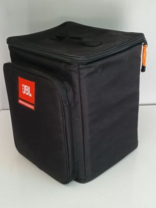 (PRECIO NO NEGOCIABLE). Maleta adecuada para guardar el altavoz JBL Eon One Compact, o bien otros equipos o accesorios. Está hecho con material acolchado de espuma para proteger bien todo lo que se guarde en su interior. Viene con un compartimento delantero y trasero con apertura y cierre por cremallera (no traen las correas para colgar a los hombros que se guardan en el compartimento trasero). Logotipo JBL bordado en color naranja. Dimensiones (largo x ancho x alto): 330x305x432 mm (exterior), 305x273x397 mm (interior). Precio en tiendas 122€ y lo vendo por 60€. Está en perfecto estado, ha tenido unos 4 usos, y siempre guardada.
