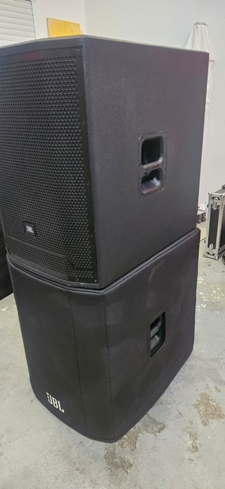 Par de altavoces JBL en color negro. Se encuentran en buen estado, listos para usar. Se puede ver y probar a gran volume en una nave de Seseña - Son dos altavoces.activos de 900w rms unos pepinasos - Ideales para eventos.precio por pareja