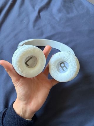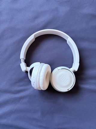 Auriculares inalámbricos JBL en color blanco. - Diadema ajustable. - Se vende SIN CAJA. La caja de la última foto es un recorte de cuando me lo regalaron, para que puedas ver más o menos que producto es, y que veas que es original. - La parte del auricular es rotativa para poderse guardar mejor. - En algunas partes, el color blanco se ha vuelto un poquito más apagado/amarillento, normalpor el paso del tiempo. - No están nuevos, pero están muy bien cuidados. - Almohadillas acolchadas nuevas. - Wireless. Bluetooth.