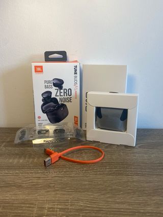 JBL Tune Buds con muy poco uso que incluyen una funda. 💯 Auriculares inalámbricos con sonido potente y graves JBL característicos. Muy cómodos y perfectos para uso diario, deporte o viajes. ✅ Incluye: • Auriculares JBL Tune Buds 1 • Estuche de carga • Cable de carga USB-C • Puntas de silicona (tallas S/M/L) • Funcionan perfectamente 🔋 Batería: Hasta varias horas de uso con carga completa + estuche con carga adicional 🎧 Emparejamiento rápido con Bluetooth 📦 Entrega en mano o envío disponible