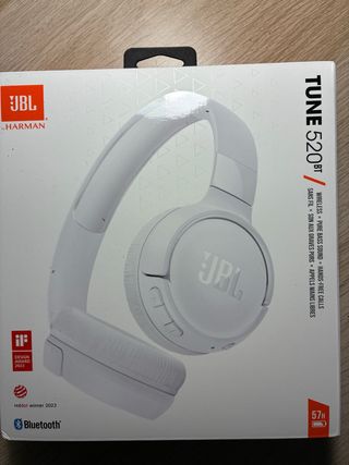 Cascos JBL TUNE 520 BT inalámbricos, sin abrir. - Tecnología Bluetooth. - Sonido Pure Bass. - Llamadas manos libres. - Hasta 57 horas de autonomía.