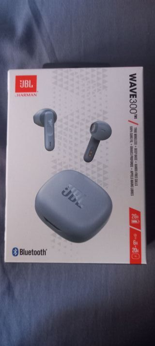 Auriculares bluethooth JBL waveBeam Nuevos precintados. Con funcion Manos libres para llamadas. Cancelación de ruido y confort. Unos graves reforzados.TOuch control. 10 min de carga 2 horas de música