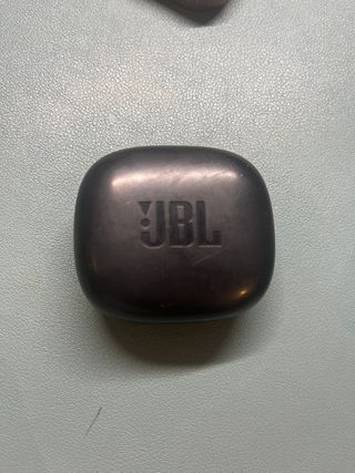 Auriculares inalámbricos JBL en color negro. Diseño moderno y compacto. - Logotipo de JBL en la parte superior. - Superficie lisa y mate.