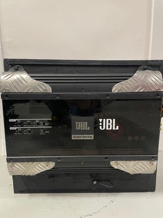 Etapa de potencia JBL Grand Touring de 4 canales, con múltiples ajustes. Anclada en cajón a medida junto a un subwoofer JBL de 12”, con sus respectivos protectores. Presenta algunos roces propios del tiempo, pero funciona perfectamente. No es un equipo “castigado”: nunca se ha usado a volumen máximo ni forzándolo con distorsión. Se desmontó porque se han instalado barras en el maletero y estorbaba, además de que no tenía mucho sentido llevarlo en un coche de circuito 😂 La etapa también estaba alimentando dos 6x9 al momento de desmontarlo.