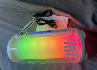 Preciosa bocina JBL, nueva. en caja. Incluye un micrófono inalámbrico. - Dispone de correa para facilitar su transporte. - Iluminación LED multicolor. - Se incluye 1 micrófono.