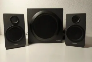 Pack de altavoces Logitech z313 + altavoces tvisto. Incluye todo lo de la imagen. Logitech z313 prácticamente nuevo con subwoofer potente y su pareja de altavoces + los dos tvisto en buen estado. Total 5 altavoces. Es una combinación perfecta ya que los Logitech son muy buenos en graves mientras que los tvisto son mejores en medios y agudos. Ambos tienen para regular su volumen. Se conectan a corriente por enchufa y a entrada de auriculares tradicional (minijack).