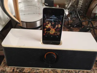 Altavoz para iPod en color blanco y negro. Diseñado para complementar tu dispositivo. SIN IPOD CON IPOD 50 EUROS Incluedo cargador electrico - Conexión para iPod. - Diseño elegante.