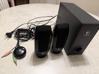 Sistema de altavoces Logitech en color negro. Incluye subwoofer y dos altavoces satélite. - Diseño elegante y compacto. - Sonido de calidad. - Ideal para PC o dispositivos de audio.
