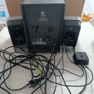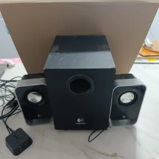 Quiero vender mis altavoces Logitech 2.1, en color negro. Están en buen estado, aunque presentan algunas marcas de uso. - Sistema de sonido 2.1 con subwoofer. - Conexiones: Entrada auxiliar, RCA y minijack. - Control de volumen en el subwoofer y en uno de los altavoces.