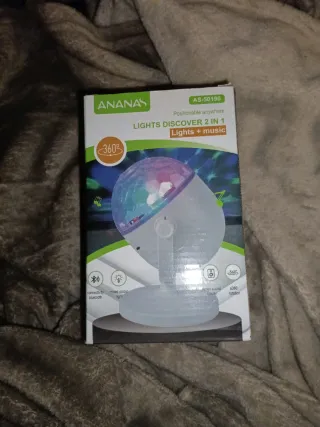 Pequeña bola de discoteca con luces LED. - Diseño facetado. - Base negra. - Cable de alimentación incluido.