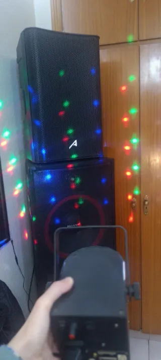 Equipo de sonido profesional, ideal para discotecas o eventos al aire libre. Diseñado para ofrecer una experiencia auditiva potente y clara. - Amplificadores de alta fidelidad. - Subwoofers de gran rendimiento. - Altavoces de calidad superior. - luces de movimiento