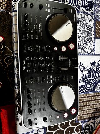 Controlador DJ Traktor Kontrol S2 en color negro. - Jog wheels sensibles al tacto. - Controles de transporte dedicados. - Botones de cue, sync y play. - le falla un poco el botón de play derecho, lo único que hay que apretar mas y la pista de bajar el volumen derecho habra que limpiarlo, funciona pero hay que darle despacio por qué se baja de golpe. Lo demás funciona bien.