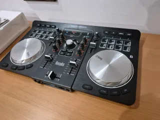 Consola de DJ Hercules DJControl Mix. - Diseño compacto y portátil. - Controles intuitivos para mezclar música. - Compatible con smartphones Android e iOS. Se usa directamente con el móvil vía Bluetooth. Como se puede ver está como nueva. La he usado en sesiones para más de 100 personas. Cabe en una mochila. Muy robusta y fácil de transportar. Puedes controlarla desde el teléfono con el programa DJay o desde la propia consola. También con una tablet. La tengo muerta de risa y me da pena. Lo pasarás muy bien con ella.