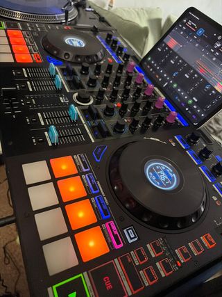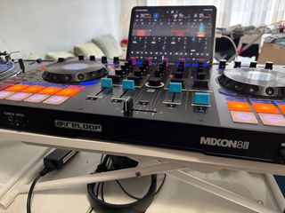Controlador DJ Reloop Mixon 8 Pro en color negro y multicolor. Diseñado para mezclas profesionales. - Múltiples pads de rendimiento. - Jog wheels sensibles al tacto. - Conexión para tablet. Perfecto para hacer un all in one con un ipad o un movil Incluye serato y djay pro solo conectar y los software se desbloquean. Comprado en djmania conserva la factura y esta en garantia.