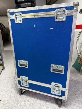 Flightcase robusto para transportar material audiovisual. Sus dimensiones son 74x109x74 cm. - Construcción resistente con perfiles de aluminio. - Asas de transporte integradas. - Cierres de mariposa de alta seguridad. - Ruedas para facilitar el desplazamiento.