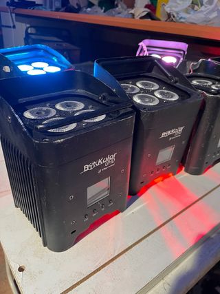 🔋 Lote de 7 focos LED PAR a batería BXkolor UHD (Starway) ⚠️ Estado: PARA REVISAR (presentan distintos fallos, incluidas baterías) 💡 Características: • Focos LED PAR inalámbricos para iluminación ambiental • Batería interna recargable (autonomía aprox. hasta 16 h) • LEDs RGBW de alta potencia • Control DMX, automático y manual • Pantalla LCD de configuración • Uso profesional en eventos, DJ, bodas, escenarios, bares 🔧 Ideales para reparar, repuestos o proyectos 📦 Se vende el lote completo, sin comprobación individual 🔎 Palabras clave: foco LED batería, PAR inalámbrico, luz DJ, DMX, RGBW, eventos, ambientación, escenario