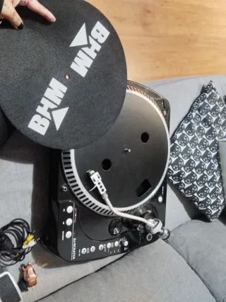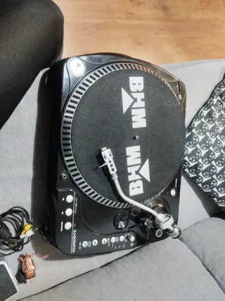 Tocadiscos profesional BHM DJ Scratch en color negro y detalles plateados. Diseñado para DJs y amantes de la música. - Plato giratorio con alfombrilla antideslizante. - Brazo de lectura de alta precisión. - Controles de pitch y reverse. - Conexiones RCA.