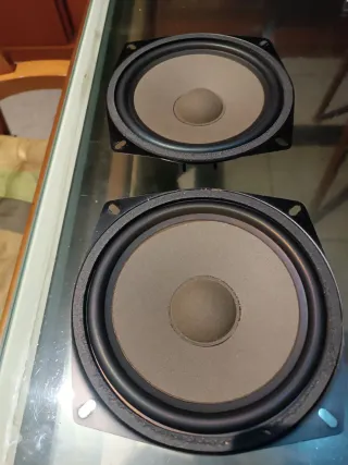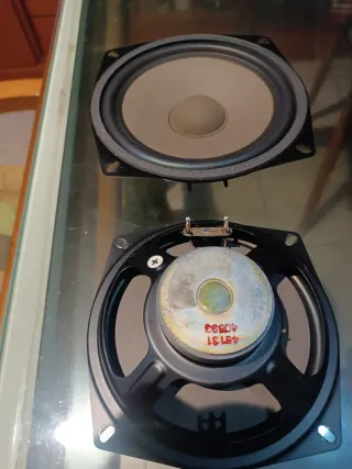 Par de altavoces con impedancia de 4 ohmios. - Cono de color marrón. - Marco exterior negro.