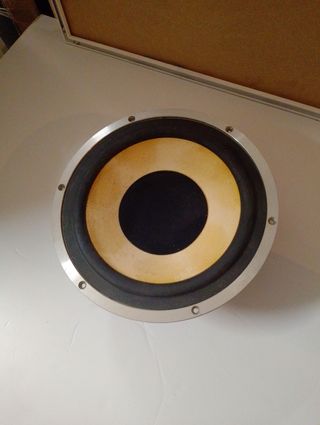 Altavoz de la marca Vieta con un diseño distintivo. ( Goma de caucho . Marco de aluminio ligero. - Cono en color amarillo. - Borde de goma negro. - Aro exterior plateado aluminio. Medidas 28 cm exterior. Más medidas en fotos.