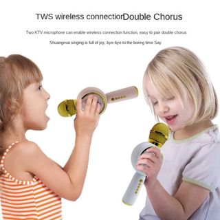Micrófono de Karaoke compatible con Bluetooth TWS, silenciador inalámbrico, micrófono de sonido mágico, altavoz TF, micrófono de cantar para niños, regalo encantador