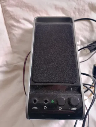 Ofrezco altavoces HP. Son dos altavoces en buen estado. - Tienen un diseño compacto y elegante. - Son fáciles de conectar a un ordenador por USB. - Conexión JACK para entrada de audio. - Botón para controlar el volumen.