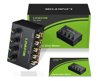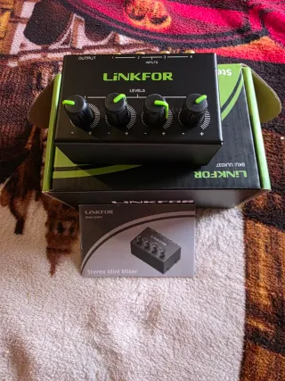 Mini mezclador de audio LINKFOR con cuatro niveles de entrada. - Diseño compacto y portátil. - Controles de nivel individuales. - Pasivo **NUEVO SIN USO**