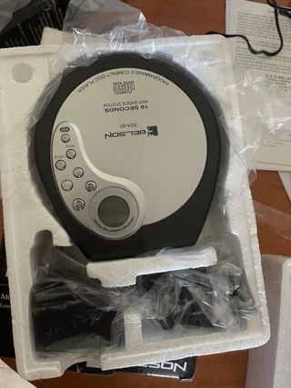 Reproductor de CD portátil Belson BSA-60 con sistema antishock. - Diseño compacto y programable. - Pantalla digital. - Botones de control de reproducción y programación.