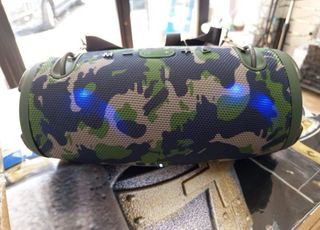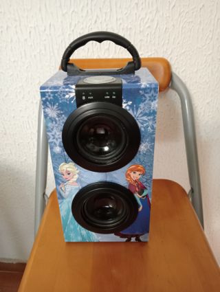 Altavoz portátil con conexión inalámbrica, sin apenas uso. -En caja original, con cable de carga y manual de instrucciones - Conexión Bluetooth. - Puerto USB. - Radio FM. - Entrada para tarjeta TF. - Entrada para micrófono. -Sonido potente y luces LED - Medidas: 18x11x10 (alto, ancho, fondo)