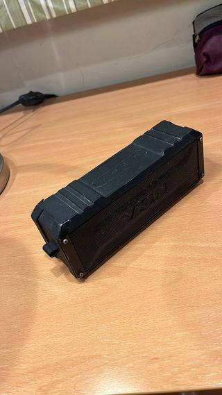 En buenas condiciones, con algunos pequeños signos de uso. Bluetooth (alcance 10m) radio y usb. Tiene 2 conexiones de micro y salida de auriculares, conexión micro usb. Tiempo de carga: 2 – 3 horas Tiempo de trabajo: hasta 3 horas Batería 1800 mAh carga con cable microusb Funciona perfectamente, tiene algunos roces. Potencia máxima 150w salida estéreo. Dimensiones: 287 x 180 x 165 mm Peso 1.75k