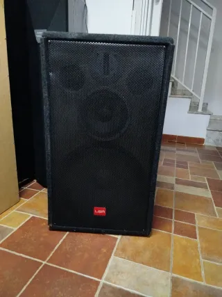 Se venden altavoces profesionales doble cono de 15 pulgadas. Son los del centro de la fotografía, los grandes. y su correspondiente etapa de potencia con todos sus cables. Se pueden probar