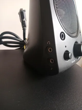 ¡Sonido de cine en tu casa! 🔊 Si buscas unos graves que se sientan de verdad y una nitidez espectacular para juegos, películas o música, este es tu equipo. Está en perfecto estado de funcionamiento y muy bien cuidado. (sin golpes). - Potencia Real (RMS): 200W (pueden llenar una sala grande sin despeinarse). - Certificación THX: Calidad de audio profesional garantizada. - Subwoofer potente: Graves profundos y ajustables desde el satélite. - Conexiones: Entradas de 3,5 mm y RCA. Puedes conectar el PC, la consola y la TV al mismo tiempo. - Control total: Volumen y bajos integrados en el altavoz derecho, salida para auriculares.