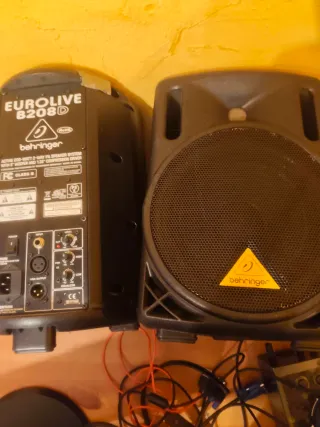 Se vende pareja de altavoces profesionales Behringer Eurolive B208D. Son altavoces activos de 2 vías con amplificador de 200W. - Woofer de 8 pulgadas. - Driver de compresión de 1.35 pulgadas. - Conexiones XLR y jack. - Ecualizador integrado.