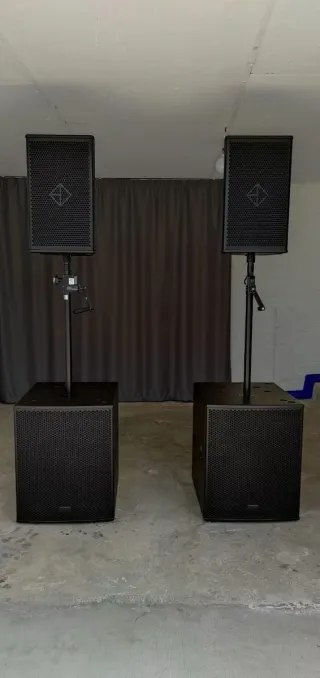 Se vende equipo de sonido profesional, ideal para eventos o instalaciones. - Altavoces de alta calidad. - Subwoofers potentes. - Soporte para altavoces incluido. - Diseño robusto y duradero.