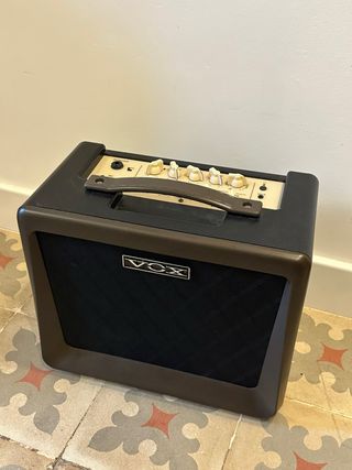 Amplificador para guitarra acústica Vox VX50-AG, 50W. Sonido muy claro y potente, ideal para casa, ensayos o pequeños directos. En buen estado de funcionamiento. Entrada para guitarra y micrófono, efectos integrados y salida LINE OUT. Vendo por falta de uso. Entrega en mano en Barcelona.