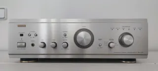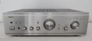 Amplificador integrado Denon PMA-1055R en color plateado. Un equipo de sonido de alta precisión y muy buenas especificaciones: Power output: 65 watts per channel into 8Ω Frequency response: 5Hz to 100kHz Total harmonic distortion: 0.07% Input sensitivity: 2.5mV (MM), 150mV (line) Signal to noise ratio: 86dB (MM), 107dB (line) Output: 150mV (line) Dimensions: 434 x 144 x 347mm Weight: 9.9kg Está en perfecto estado y viene con su mando original.