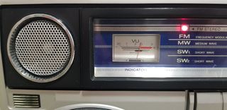 Boombox Sanyo M9940K en excelente estado. CASI NO SE HA USADO, ASPIRADO, HIGIENIZADO, LIMPIEZA DE COMMUTADORES Y POTENCIÓMETROS, CAMBIADOS LOS ARRASTRES Y EL RODILLO PRESOR, CABLE DE RED ORIGINAL CON DOS ENCHUFES, VÚMETRO INDICADOR, CROMADOS PERFECTOS, ANTENA PERFECTA, COMPARTIMENTO PILAS SIN ÓXIDO, ES INCREIBLE EL ESTADO DE ÉSTE SANYO. RESTAURACIÓN E INGENIERÍA PROFESIONAL, PRODUCTOS DE TOTAL CONFIANZA. - Radio AM/FM/SW1 Y SW2. - Reproductor de cassette. - Diseño plateado y negro. - Cable red original y vúmetro indicador.