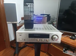 No negociable. Vendo amplificador estéreo Denon DRA-F100 (tamaño micro). No te dejes engañar por su tamaño; es un equipo de alta fidelidad con un sonido cálido, detallado y una construcción robusta con frontal de aluminio. Ideal para espacios reducidos, despachos o como segundo equipo sin sacrificar calidad. Tiene entrada phono. Añado receptor bluetooth 1mii B06 que utilizo para enviar la música desde el móvil. Tiene radio RDS FM (el cable blanco es la antena). Envío más fotos y vídeo si se desea. Tuning range: FM, MW Power output: 30 watts per channel into 4Ω (stereo) Dimensions: 270 x 84 x 289mm Weight: 4.1kg