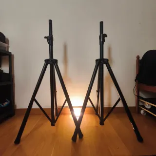Se venden dos soportes para altavoces Universales + funda de transporte a medida con cremalleras. - Diseño universal. - Color negro. - Hasta 30kg de carga - 2m de altura máxima - Peso del conjunto 4/5kg - Funda amplia en la que caben algunos accesorios más de tu kit. Perfectos para Eventos Bodas Comuniones Academias Sonido Profesional Música Estudio Instalaciones Fijas